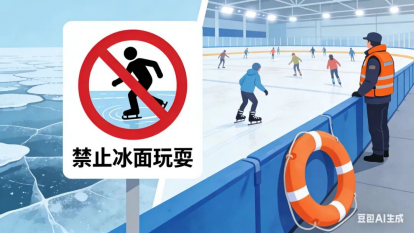 切勿到无安全防护的自然水域冰面玩耍、穿行;进行冰上活动,务必选择有经营资质的正规场所,如遇冰面破裂落水,要保持镇静,大声呼救,科学自救。